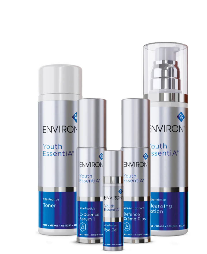 Environ Youth EssentiA je exkluzivní anti-age řada vytvořená pro klientky, které si potrpí na luxusní, vysoce účinnou péči a viditelné výsledky. Tato sofistikovaná kolekce kombinuje špičkové formy vitaminů A, C a E s pokročilými peptidy a antioxidanty, které podporují tvorbu kolagenu, zlepšují pevnost pleti a redukují jemné i hlubší vrásky.